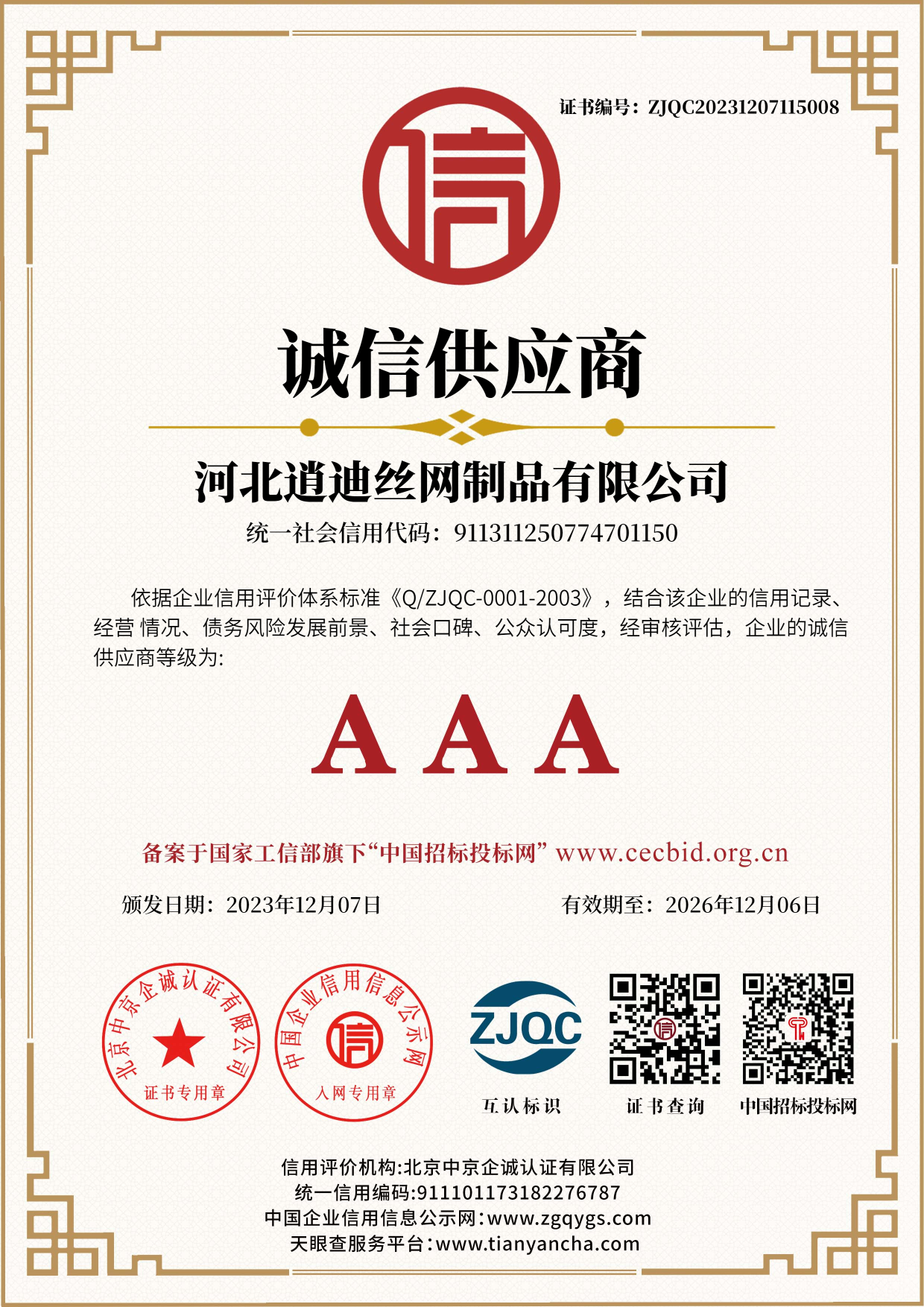 河北逍迪絲網(wǎng)制品有限公司誠信天下,誠信是我們公司一個(gè)原則問題不可撼動(dòng)的,以心中有誠信的思想結(jié)交五湖四海的朋友,能達(dá)到雙贏是最好的,我們堅(jiān)信朋友多了路好走,我們公司都是老朋友多,我們一直是這樣做的。河北逍迪絲網(wǎng)制品有限公司成立于2013年注冊(cè)資本壹仟伍佰萬整,主要生產(chǎn)沖孔網(wǎng),鋼格板,金屬防蟲網(wǎng),如實(shí)的實(shí)體廠家,是一家-研發(fā)-銷售-生產(chǎn)-安裝-售后一條龍公司,2019年通過了ISO 9001認(rèn)證管理體系符合GB/T 19001-2016/ISO 9001:2015標(biāo)準(zhǔn),同時(shí)通過了SGS認(rèn)證,擁有商標(biāo)版權(quán)2品牌,擁有一個(gè)著作版權(quán),河北逍迪絲網(wǎng)制品有限公司位于中國有名的(絲網(wǎng)之鄉(xiāng))安平縣,于天津,北京,雄安,石家莊相鄰,交通非常發(fā)達(dá),出口可以選擇天津港口非常近每天都有接貨送貨往返車輛,空運(yùn)可以選擇石家莊正定機(jī)場(chǎng),附近也有鐵路運(yùn)輸,當(dāng)?shù)剡€有兩個(gè)生態(tài)物流園區(qū)發(fā)往全國各地,我們沖孔網(wǎng)工廠生產(chǎn)設(shè)備有:普通沖壓機(jī),高速?zèng)_壓機(jī),自主研發(fā)小微孔沖壓機(jī),龍門沖,磚塔沖孔,重型沖孔機(jī),萬瓦級(jí)別激光切割機(jī),3000W激光切割機(jī),焊接設(shè)備,折彎機(jī),校平機(jī),剪板機(jī),精密校平機(jī),(對(duì)板面平整度要求苛刻的客戶群體0.5-0.2誤差)我們公司銷售市場(chǎng)沒有局限性國內(nèi)國外都供應(yīng),擁有出口權(quán)...